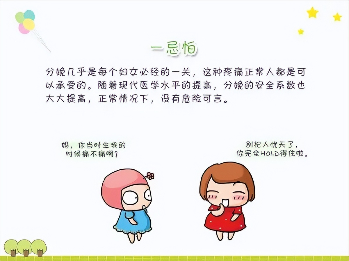 俗话说:“生孩子如过鬼门关。”到了临产前,很多孕妇都会莫名兴奋或紧张焦虑,还有可能会有恐惧情绪。恐惧情绪一方面是源于分娩的生命风险,另一方面是源于分娩疼痛。